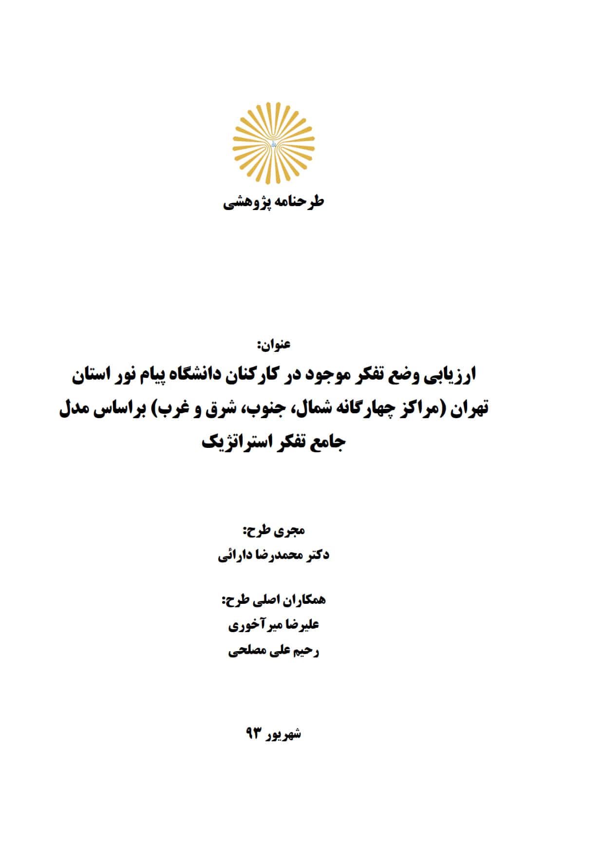 امروزه سازمانها به دلیل اینکه دیگر با محیط باثبات و یکنواخت گذشته مواجه نیستند با چالشهای فراوانی در فرآیند تصمیمگیری خود مواجه هستند. در چنین شرایطی برخورداری از درک و فهم مناسب به منظور اتخاذ تصمیماتی معقول و صحیح تنها از طریق اتخاذ فرآیند تفکر استراتژیک ممکن است. در این میان مدل جامع تفکر استراتژیک مدلی است که با فرهنگ و شرایط کشور ما منطبق بوده و این تحقیق براساس آن شکل گرفته است. لذا این تحقیق به دنبال ارزیابی وضع تفکر موجود در کارکنان دانشگاه پیام نور استان تهران (مراکز چهارگانه شمال، جنوب، شرق و غرب) براساس مدل جامع تفکر استراتژیک صورت پذیرفت و بدین منظور 14 فرضیه تعریف گردید.